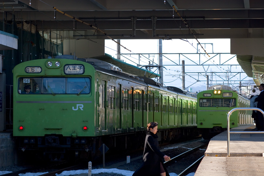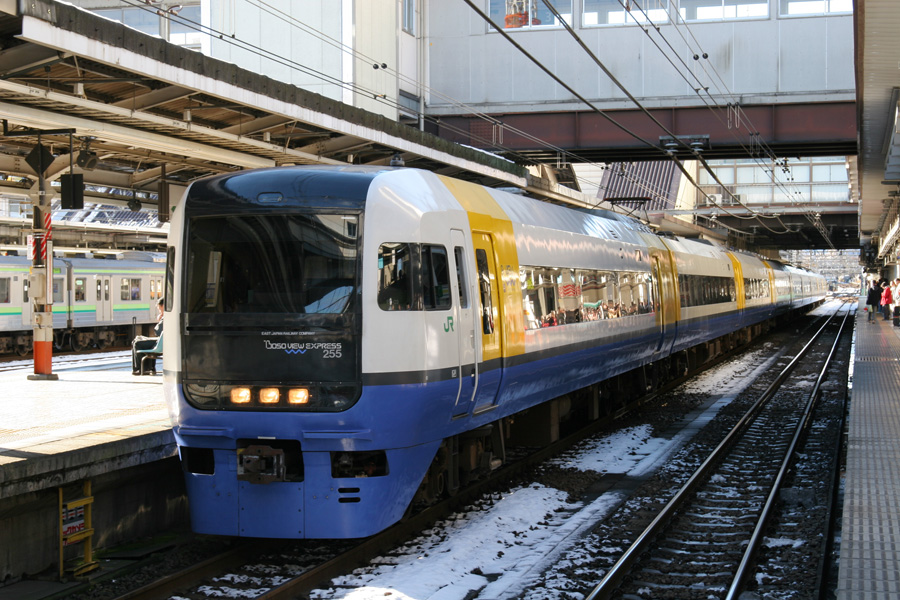 103系を撮影して八王子駅に戻ったら遭遇した255系房総特急。元旦の臨時列車として運転した帰りのようだ。この車輌、カラーリングがとても好きだ♪ 八王子駅にて 20D + SIGMA18-50 F2.8 EXDC 40mm 1/50sec F8.0 ISO 100 JPEG>リサイズ900x600 |