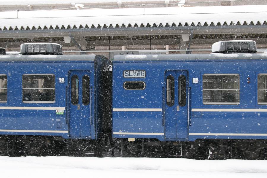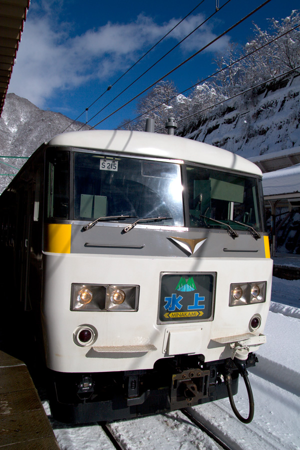 昨日までの雪が嘘のように晴れ渡る。積もりたての真っ白な雪と嘘くさいほどの青空のコンビネーションで、まるでポジフィルムの世界(笑) 雪と青空だけで、なんということもない駅撮り風景がすばらしい画に変わるのだから不思議だ。 水上駅にて 20D + SIGMA18-50 F2.8 EXDC 18mm 1/1600sec F8.0 ISO 100 RAW現像>レベル補正>リサイズ600x900 |