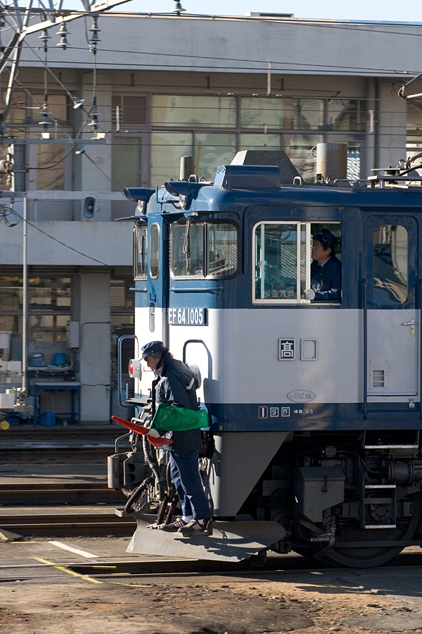 1001が特別列車専用なのに対して、37号機はしょっちゅう八王子駅で不定期の貨物を牽いている。今日はレール専用貨車のチキを牽いての出陣。いいように使われてます(^^; 八王子駅にて 20D + SIGMA18-50 F2.8 EXDC 29mm 1/60sec F8.0 ISO 200 JPEG>リサイズ900x600 |