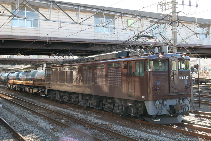 客車牽引用の茶色塗装EF64 37号機。同色のEF64