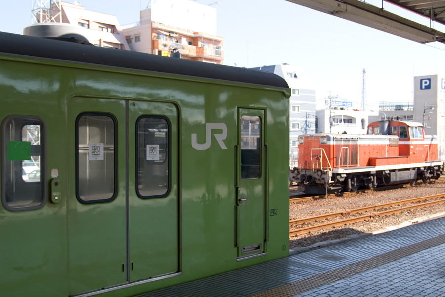 半自動扉のドアボタンがキュートな八高線103系3500番台ハエ56編成。明日はダイヤ改正。この編成も見納めとなる。 ありがとう!…そして、さようなら(T_T)/~ 八王子駅にて 20D + SIGMA18-50 F2.8 EXDC 28mm 1/500sec F5.0 ISO 200 RAW現像>リサイズ900x600 |
