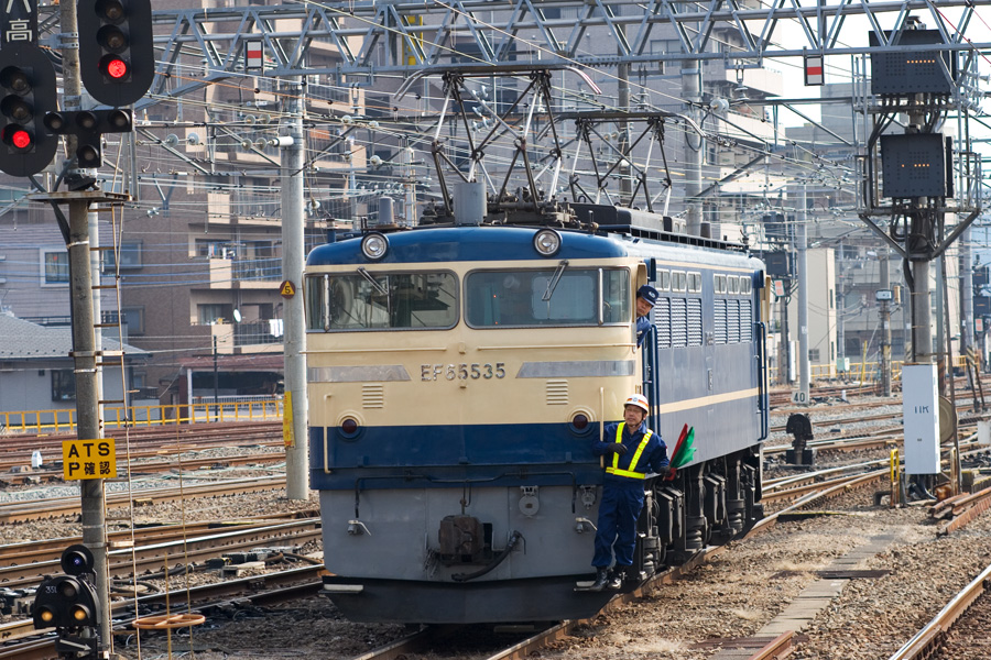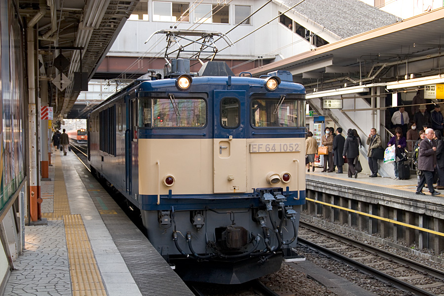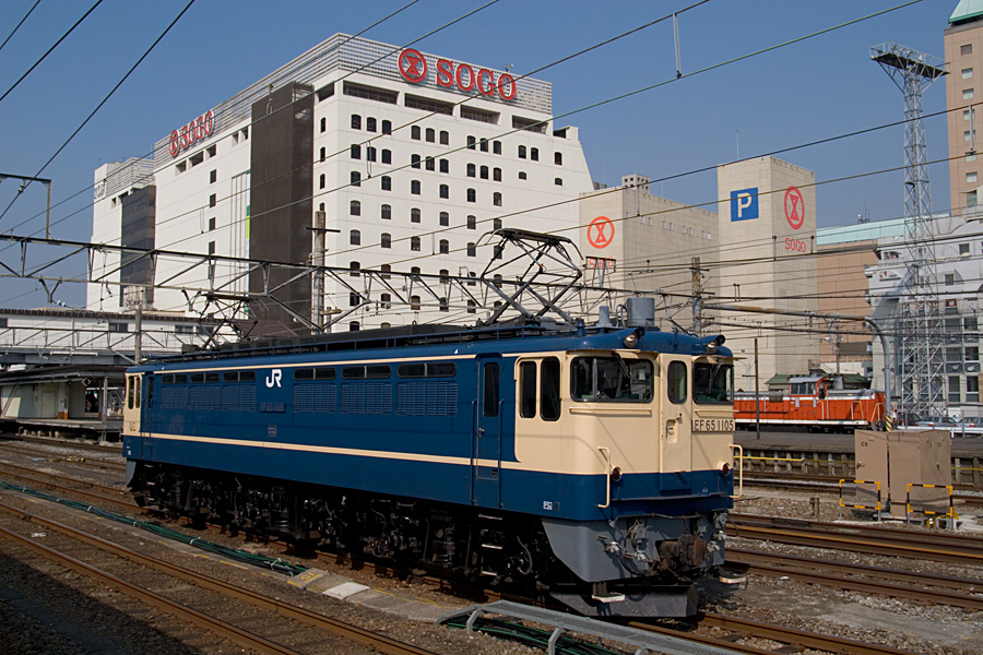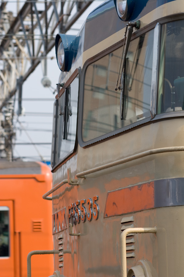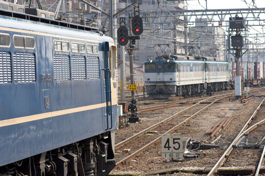 EF65 535号機と下ってきたEF64 63号機と61号機の重連。本当はEF64にピントを合わせてEF65のほうをぼかそうと思ったのだが、レア機のほうをぼかすなんてもったいなくてできなかった(笑) 八王子駅にて 20D + EF100 F2 100mm 1/200sec F7.1 ISO 100 RAW現像>リサイズ900x600 |
