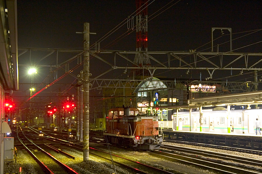 夜の闇の中でたたずむDE10 1513号機。貨物列車がやってくる八王子駅は夜中までにぎやかだ。 八王子駅にて 20D + SIGMA18-50 F2.8 EXDC 50mm 1/10sec F4.0 ISO 1600 RAW現像>リサイズ900x600>アンシャープマスク |