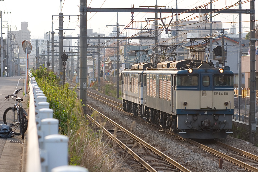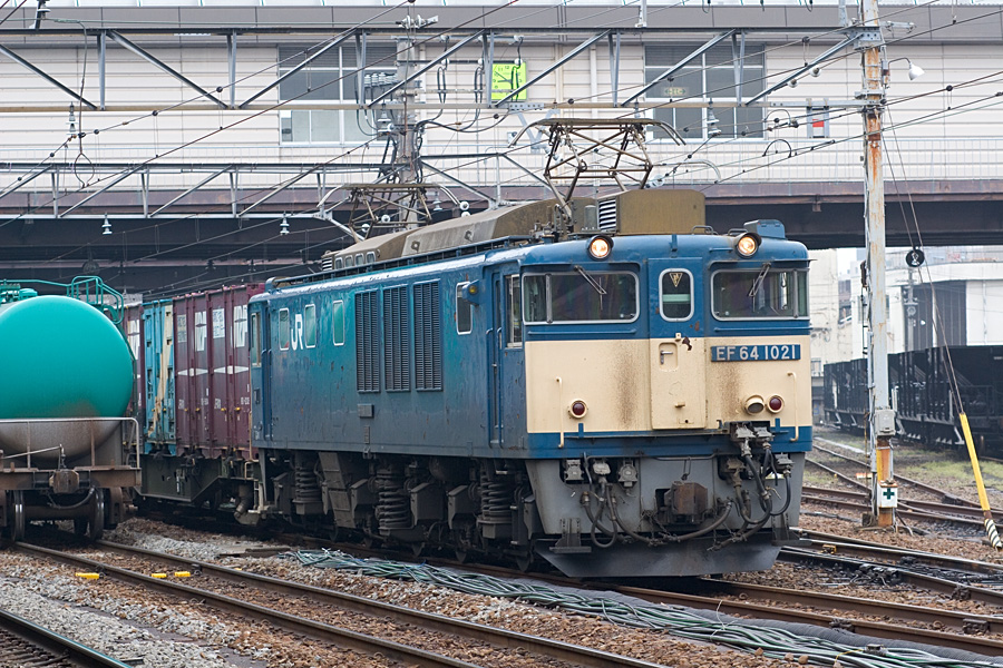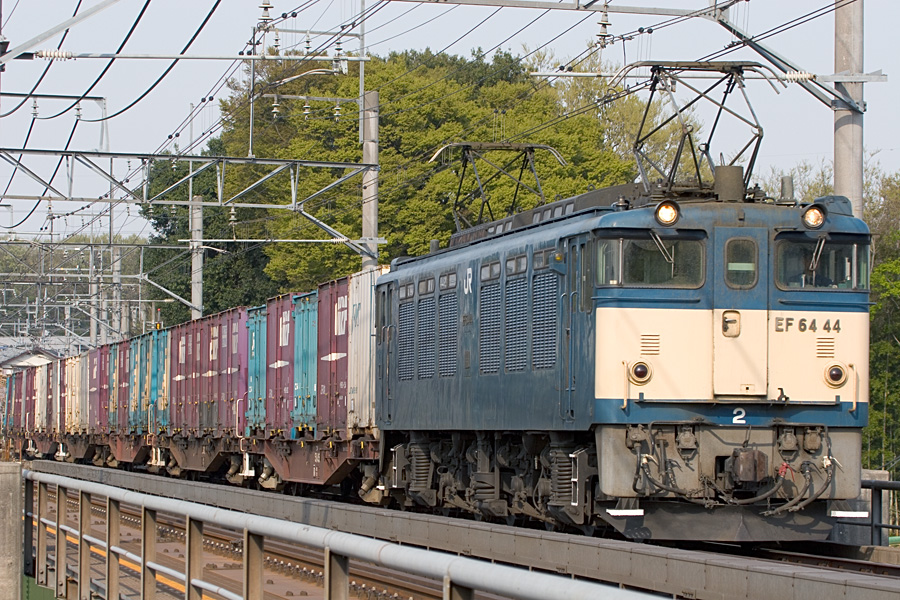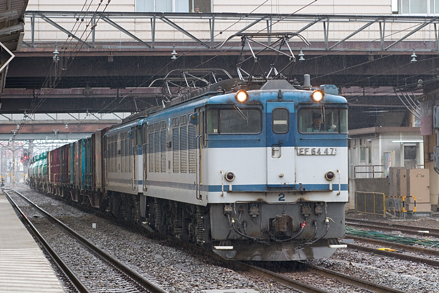雨の中のEF64 47号機と51号機の更新色重連。雨でも意外と絵になる。 八王子駅にて 20D + EF100 F2 100mm 1/125sec F5.6 ISO 400 RAW現像>リサイズ900x600>アンシャープマスク |