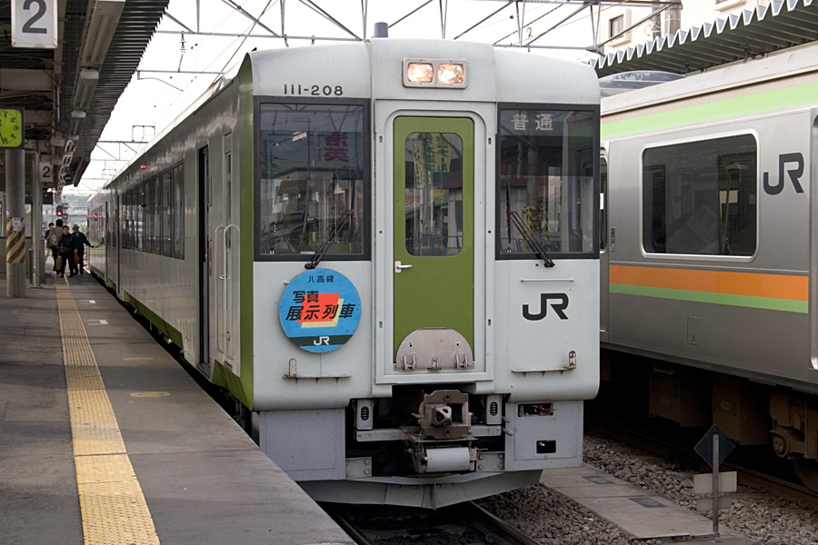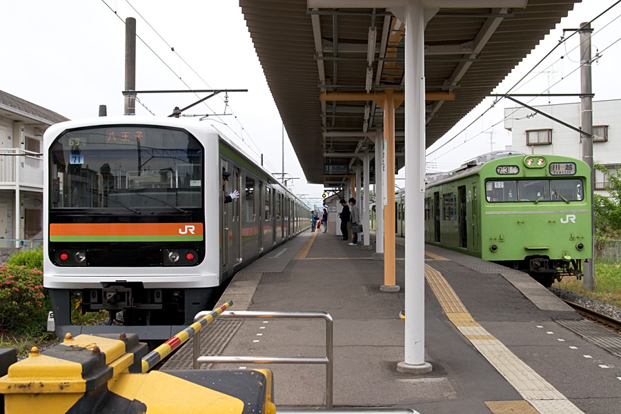 上の列車交換で209系3100番台に乗り、東飯能駅で103系を待ち伏せした。八高線の103系を撮り始めた頃には、まさか春まで走るとは思わなかったので、緑と一緒に撮れるのはちょっと嬉しい♪ 東飯能駅にて 20D + EF100-400 F4.5-5.6 400mm 1/400sec F7.1 ISO 200 RAW現像>リサイズ600x900>アンシャープマスク |