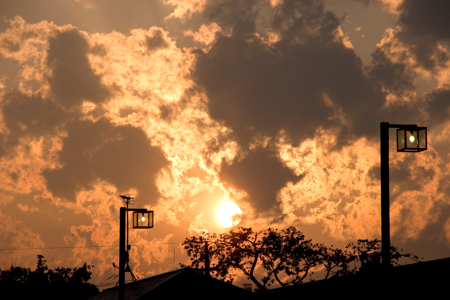 午後は雨が降っていながらも晴れているという不思議な天気。夕方、突然雷が鳴り出したと思ったら、直径10mmを超える雹がバラバラとものすごい音を立てて降ってきた。その後、現れた夕焼け。非常に幻想的な風景だった。 自宅付近にて 20D + SIGMA18-200 F3.5-6.3 DC 144mm 1/400sec F9.0 ISO 100 RAW現像>コントラスト>リサイズ900x600 |