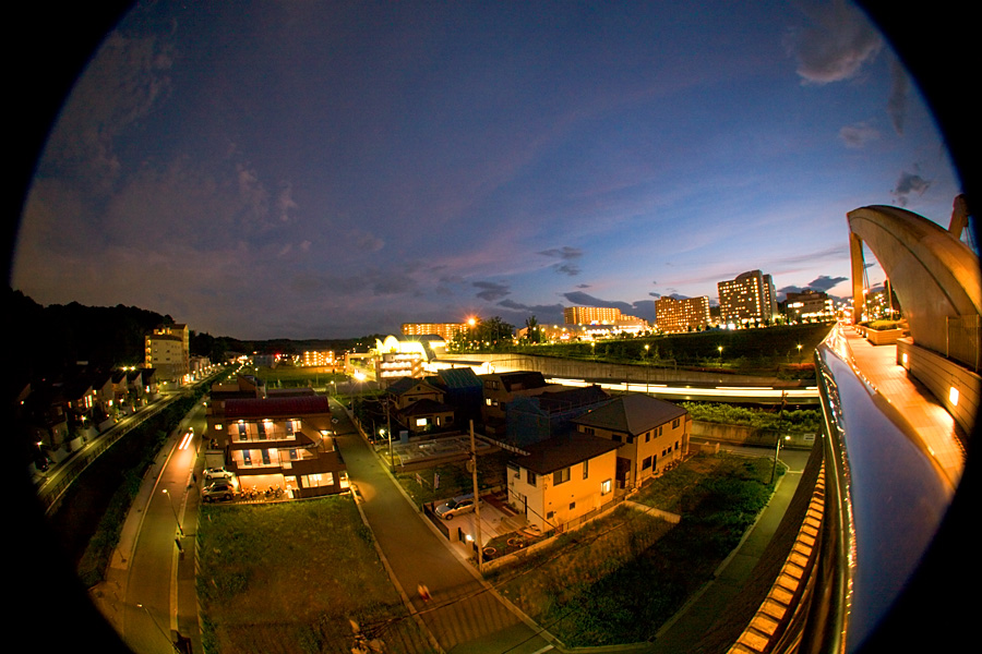 八王子みなみ野駅に入線する横浜線205系と、夕焼けから夜へと変わっていく空。ちょっとオーバー目に彩度を上げ、青空と夕焼けを強調してみた。 空を大きく入れたい時はやっぱり魚眼だね! 八王子みなみ野駅付近にて 20D + SIGMA 8mm FISHEYE F4 8mm 1/2sec F5.6 ISO 1600 RAW現像>彩度調整>Redレベル補正>リサイズ900x600>アンシャープマスク |