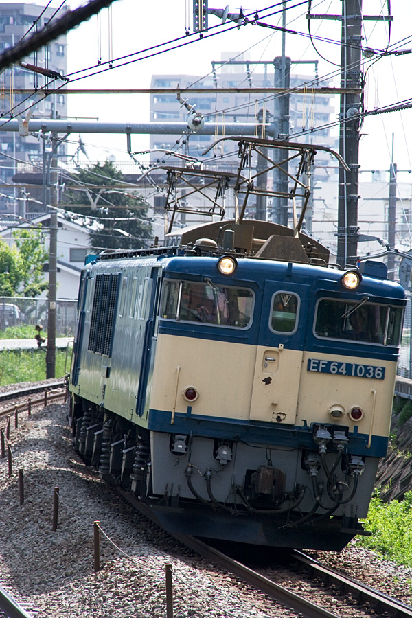 西八王子へのカーブを抜けていくEF64 1036号機。本当はコキを牽いてるのだが、このアングルでは見えていない。 西八王子駅付近にて 20D + SIGMA18-200 F3.5-6.3 DC 162mm 1/500sec F8.0 ISO 400 RAW現像>トーンカーブ修正>リサイズ900x600>アンシャープマスク |
