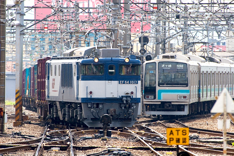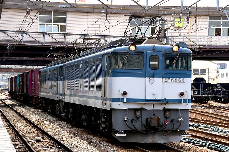 耳なしの更新色重連、EF64 64号機と60号機。最近、原色と更新色それぞれで重連を組んでくれているので、非常に美しい。でもやっぱり耳がないと少し寂しいなぁ。 八王子駅にて 20D + SIGMA18-200 F3.5-6.3 DC 88mm 1/500sec F8.0 ISO 400 RAW現像>コントラスト>リサイズ900x600>アンシャープマスク |