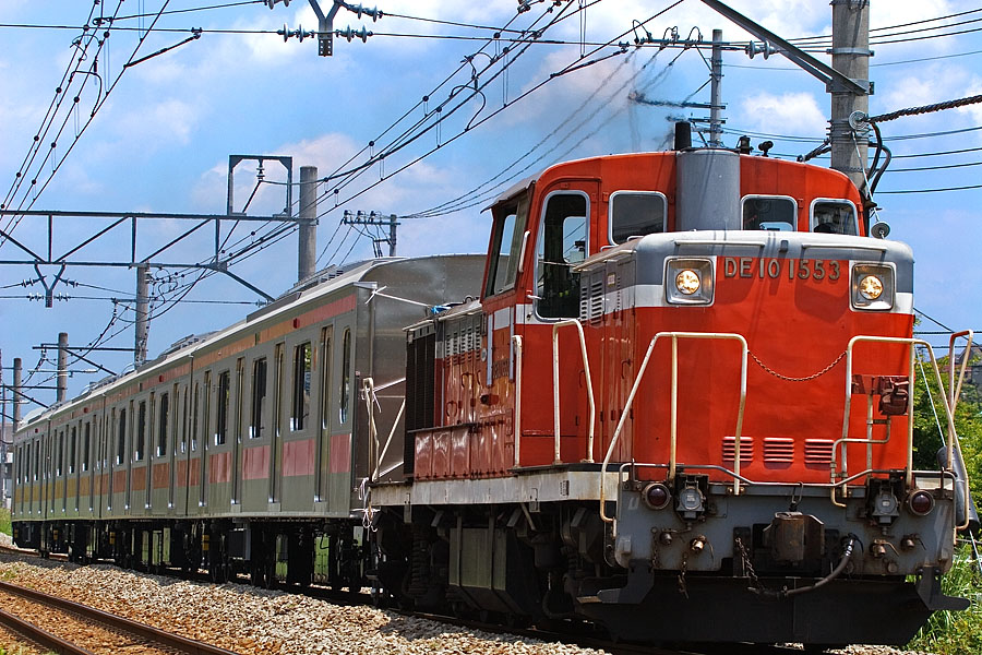 1553号機も運んできた。このDE10はどうやら明日の東急の5050系の甲種回送を担当するようだ。 八王子駅にて 20D + SIGMA18-200 F3.5-6.3 DC 162mm 1/250sec F8.0 ISO 400 RAW現像>トーンカーブ修正>リサイズ900x600>アンシャープマスク |