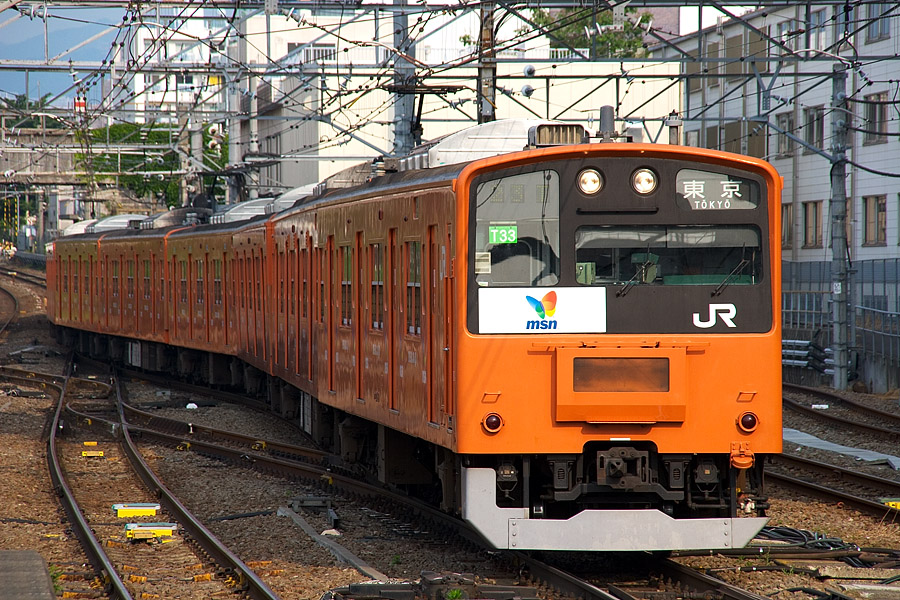 ようやく日が当たるようになってきたところにやって来た201系T33編成MSNラッピング。ちゃんとラッピングがわかるように側面も写るようにしたのだが、ロゴが小さくてあまりよくわからない。 八王子駅にて 20D + SIGMA18-200 F3.5-6.3 DC 144mm 1/500sec F8.0 ISO 400 RAW現像>トーンカーブ修正>リサイズ900x600>アンシャープマスク |
