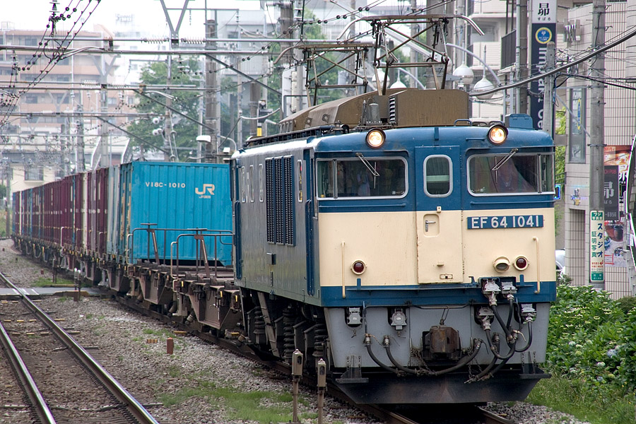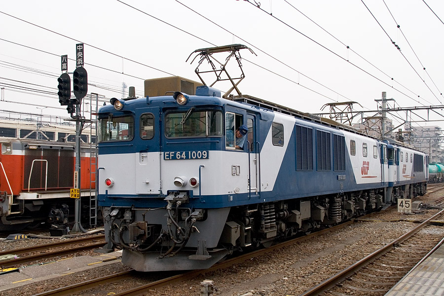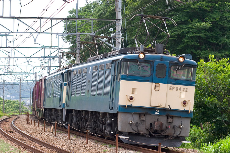 出勤のため八王子駅で乗り換える際、横浜線奥の留置場にレアカマを発見し、急遽撮影ポイントへ(^^; なんとか間に合った1000の貨物列車(5487レ)はなんとEF64