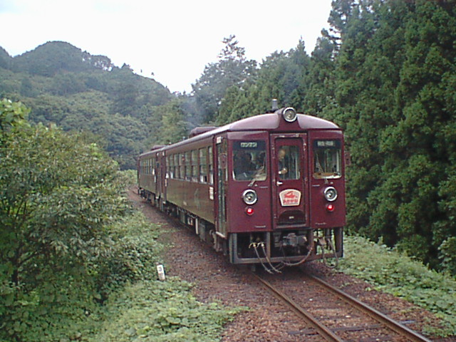 ここで、駅の中にある温泉にはいる。駅の中なので列車客だけかと思いきや、かなりの盛況ぶり。露天風呂から外を見ると、でっかい駐車場がある。うむ、納得。このあたり、景色もよく、道路も国道が一本通っているため、ドライブルートとしてもメジャーだ。その客を取り込んでいるため込んでいるようだ。さらに、ツアー観光客が結構いる。