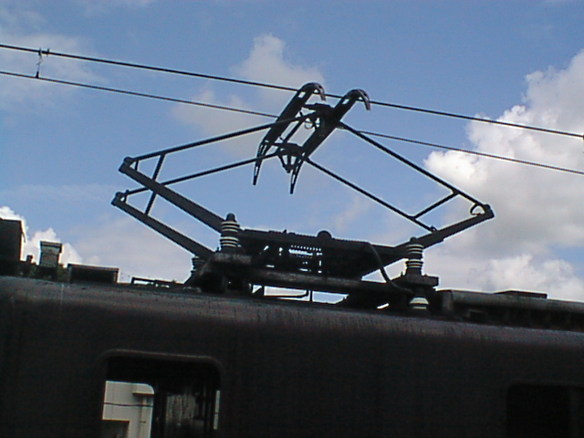 SLを動態保存していることで有名な大井川鉄道。主役はC11だが、その一番後ろに連結されている電気機関車もかなりの骨董品。SLを動かすもうひとつのエネルギーがパンタグラフから流れ込んでいく。 (金谷駅ホームにて) |