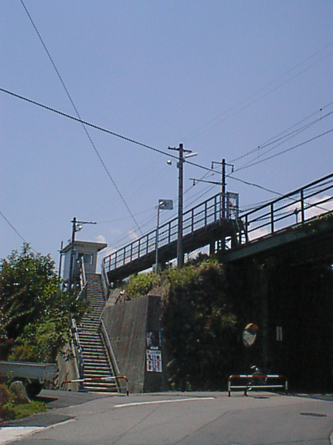 ホームの幅が約80cm。駅舎らしい物はなく、小さな待合室がひとつあるだけ。もちろん無人駅だ。線路が高台を通っているため、駅には下の道路から階段で上がって来る形だ。…駅のホームより階段の幅の方が広い?(笑)