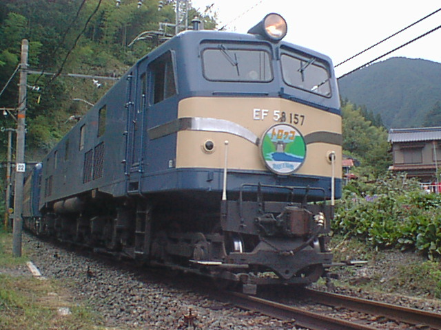 地響きをたてて間近を通り抜けていくEF58157。さすがにちょっと恐かったので、次からはもうちょっとはなれて撮ろう(^^;