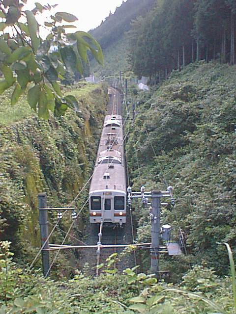 本当に今日は強運な日だ。いつもだともっと迷うのだが…。アスファルト道を降りてきたのでトロッコが来るまでまだ30分ほど時間がある。さすがに少し疲れたので、撮影ポイント近くの空き地で一休み。農作業をしに来た地元の人と会話をする。ここらの人は村の外の人にも親しげに話しかけてくれる。言葉のなまりとしては西ではなく、北日本系、新潟や秋田の言葉に近い感じがする。話によるとたまに撮影しに来ている人がいるとのことだが、今日は誰も来ていないようだ。