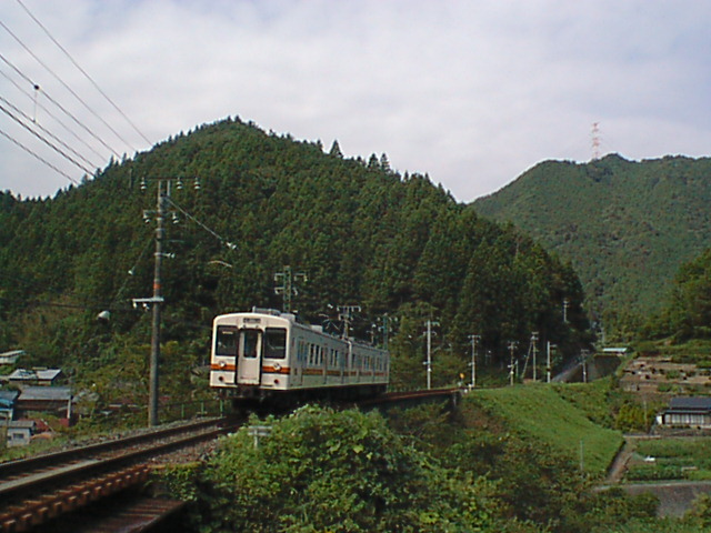 本日のお目当て、トロッコ列車を牽引するED18 2。ノスタルジックと言うよりレトロという感じがする。前後にある人の乗る(つかまる?)ところは取り外されてしまっているようだ。これで、飯田線トロッコ牽引車は3両とも見たことになる♪ (上市場駅付近にて) 右→ 飯田線119系5000番台。飯田線はやっぱり2両がかわいい。写真左手の崖(?)のすぐ隣は水路になっておりなん、なんと、線路より高い位置を水が流れている。この壁のせいで池場駅のホームはかなり細い。 (池場駅付近にて) |