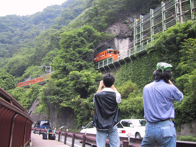 鹿飛橋を渡ると吾妻渓谷巡りは終了。つづいてトンネルでの列車撮影に向かう。
