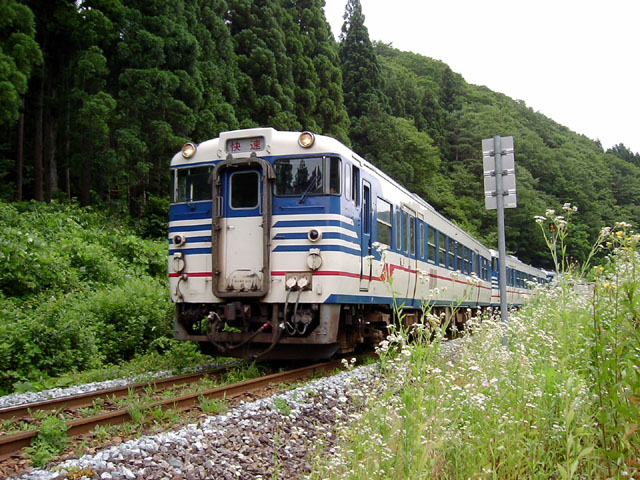 早々に荷物を片づけ、列車に乗る。今度のはキハ47・58コンビだ。頭が47形だったので、あとで写真を見るまで気づかなかったのだが、2両目は急行形のキハ58形だった。く〜、気づいていればもっとちゃんと撮影したのに…。