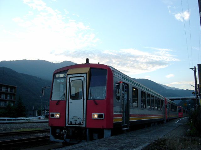 窓からの風で体を空冷。ようやく人心地ついたところで猪谷駅に到着。そしてまたもやJRとの接続も6分後というすばらしさ♪ 今日はよくつながる日だ。