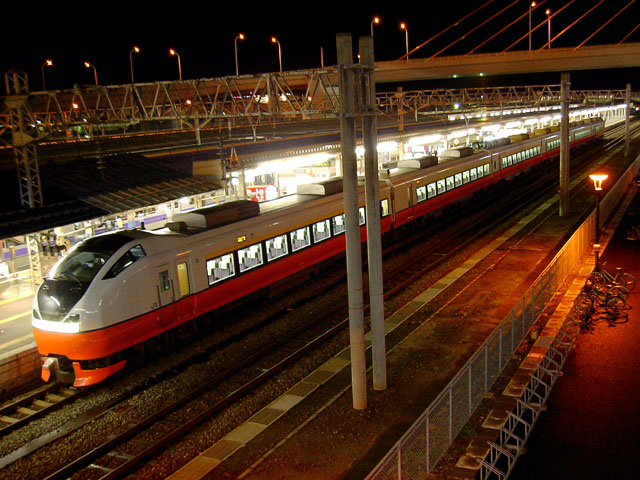 来た!と思ったら回送列車。でも旧色の485系だったので、迷わずカメラを構える。前回、前々回と、デジカメの起動時間と電池切れにより、ことごとく撮影失敗してきた。その反省をいかして、今回はデジカメを研究してきた。