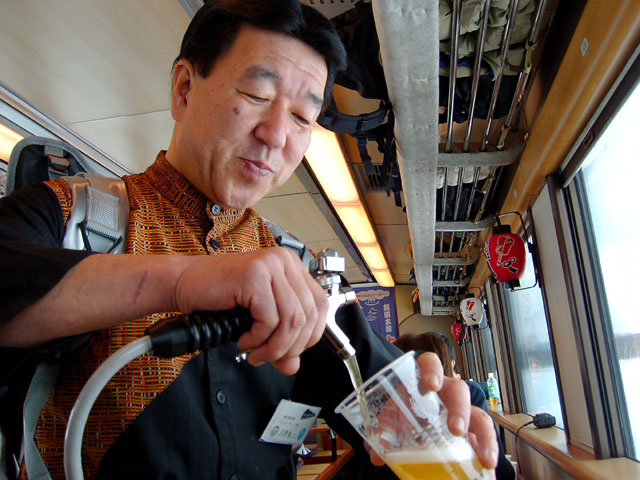 今回はあらかじめ座席を決めてしまっているので、席は選べない。山崎曰く、混んでて選ぶ余地がなかったとの事。列車の自由席に乗り慣れている筆者には、全席予約ってのは非常に使いにくい。先のダイヤ改正で、はやて・こまちが全席指定になってしまい、ぶらりと東北に出かける事ができなくなってしまった。計画性のない筆者には迷惑な話である。