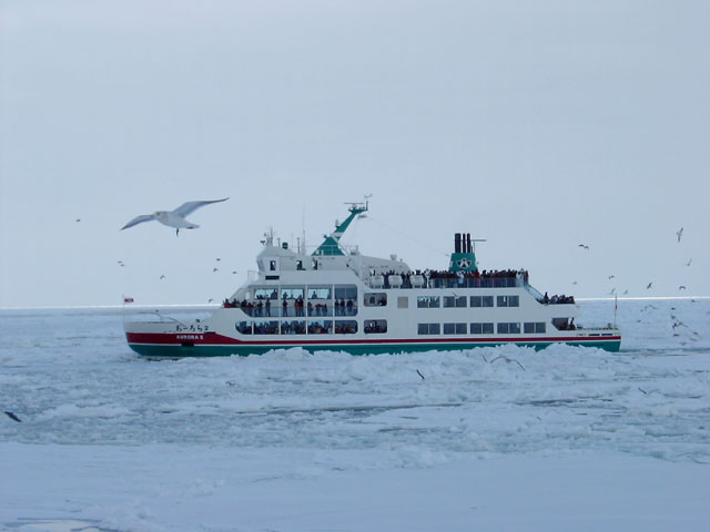 ここにわずかに流氷の博物館っぽい展示があった。はるばるアムール河口からやってきているらしく、また、北海道は流氷のたどり着く最南端なんだそうな。地形的にも樺太や千島列島があるためにちょうど北海道に貯まる形だ。北海道で流氷が見られるのは当たり前だと思っていたが、結構微妙な条件の下に成り立っている事が判明。近年は温暖化の影響なのか、流氷が接岸している期間も短くなっているようだ。BGMに流れている「きゅぃ〜」という音は流氷の音とのこと。海獣の鳴き声に似ている。