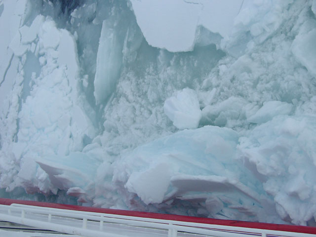せっかく来たので520円払って展示を見てみる。プロジェクター3画面分のシアターで流氷と網走についてのヴィデオを鑑賞。そうおもしろいものでもなかった。順路に従って地下へと降りていくと、そこはガラス張りの大きな冷凍庫があり、本物の流氷が展示してあった。おもしろいのはこの冷凍庫の中に入れる点だ。温度計の表示は-18.5度となっており、防寒具を装備し始めた。そんな筆者に苦笑しながらおねえさん曰く「風がないので体感温度はそれほどでもないですよ」。そして濡らしたタオルを渡してくれた。好きな形に凍らせて遊んでくれとの事(笑)