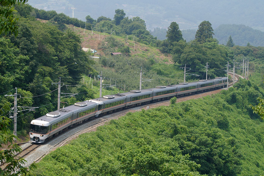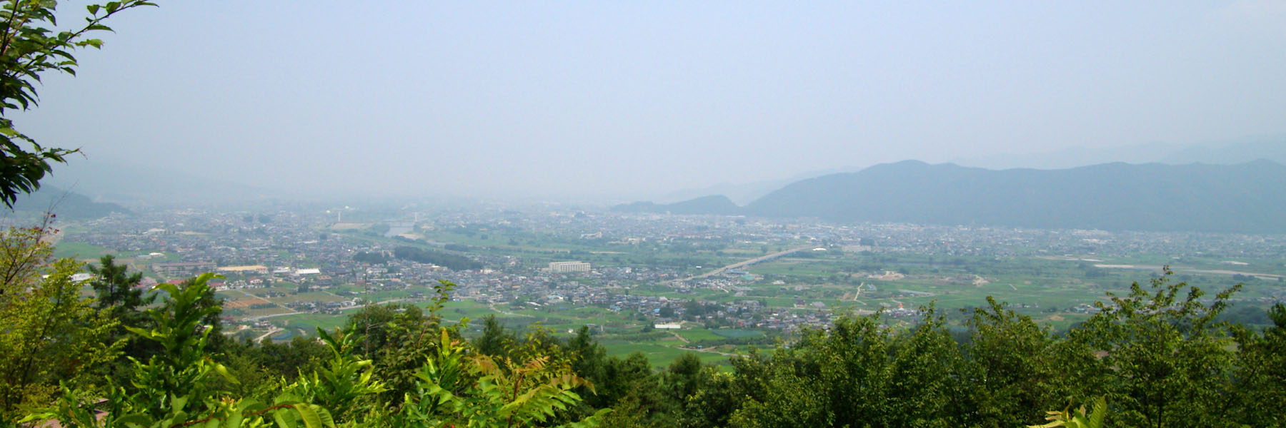姨捨からの眺望は日本三大車窓のひとつに数えられる。駅からは電線が目に入って風情がないので、これは駅の側の姨捨公園からの景色。棚田に映る月とかがきれいらしいのだが、今となっては街になってしまい見れそうもない。国鉄時代は9つの駅が眺望できたという話だが、今日の視程の悪さを差し引いてもとても見れるとは思えない。双眼鏡あっても厳しいだろうなぁ。