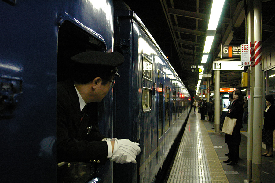 急行銀河と車掌さん。ブルトレっていう雰囲気〜♪