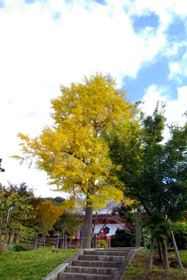 イチョウも所々に緑の部分が残っているが、緑と黄色というのはそれなりにきれい。