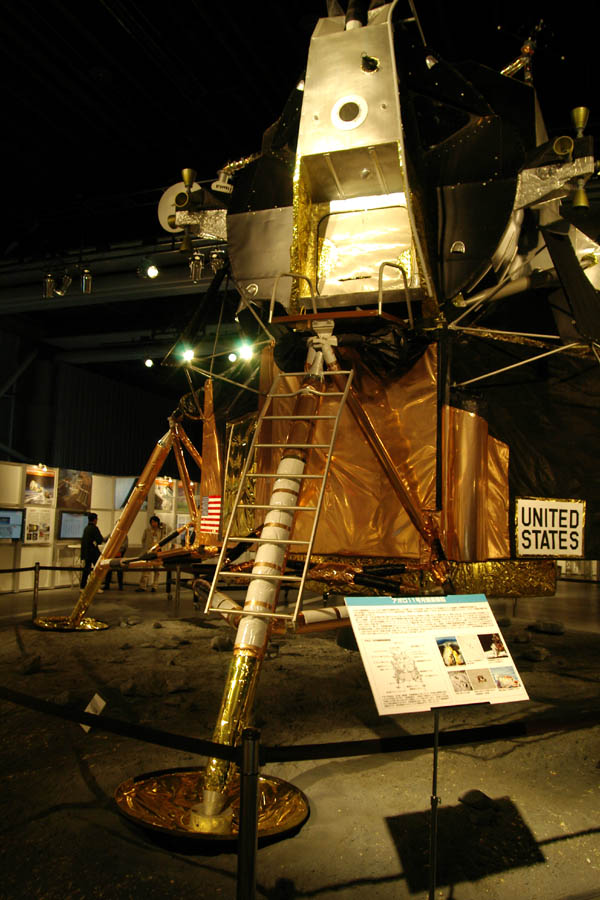 催事ホールに入って、目の前にどーんとそびえる月着陸船!こんなでかいものが、人を乗せて34年も前に月に行ったのか!