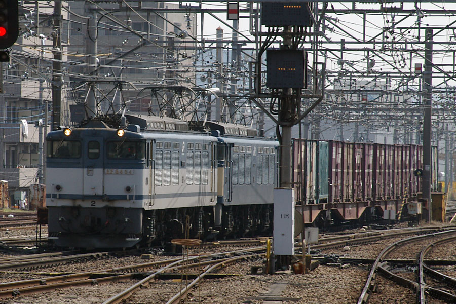 なんの変哲もない貨物列車だが、先頭車両がEF6464! ろくよんろくよんいちにっぱ!
