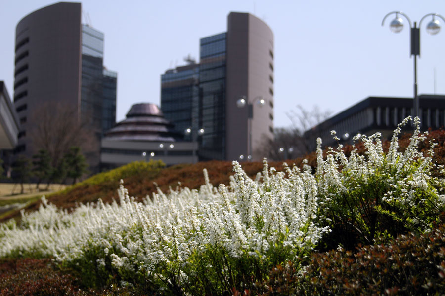 ユキヤナギ(だよなぁ?)。いやぁ、後ろの建物、モザイクかけようか本気で悩んだり(笑)