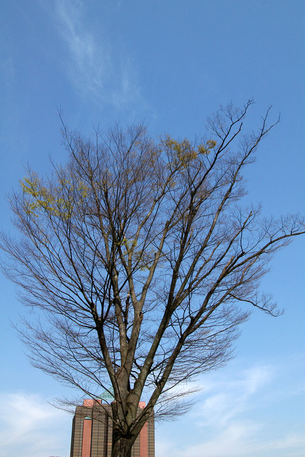 新芽が出てきたケヤキと青空。八王子は空が広い。前の会社にいたときは空を見上げることなんてなかったなぁ。最近、青空とか星空のあまりの美しさに、立ち止まって見上げることもしばしば。世界って結構きれいだと気づく。
