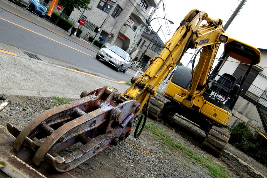 ![]() KOMATSU PC40MR デストロイアーム装備。近くのアパートをバリバリと破壊していた。かっこよすぎる! PC40は小さい割にはアームが大きく、力強い感じがする。KOMATSUのショベルカーはデザインがいい☆ (自宅付近にて 2004.06.27) |