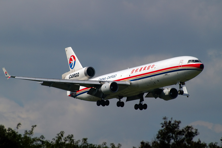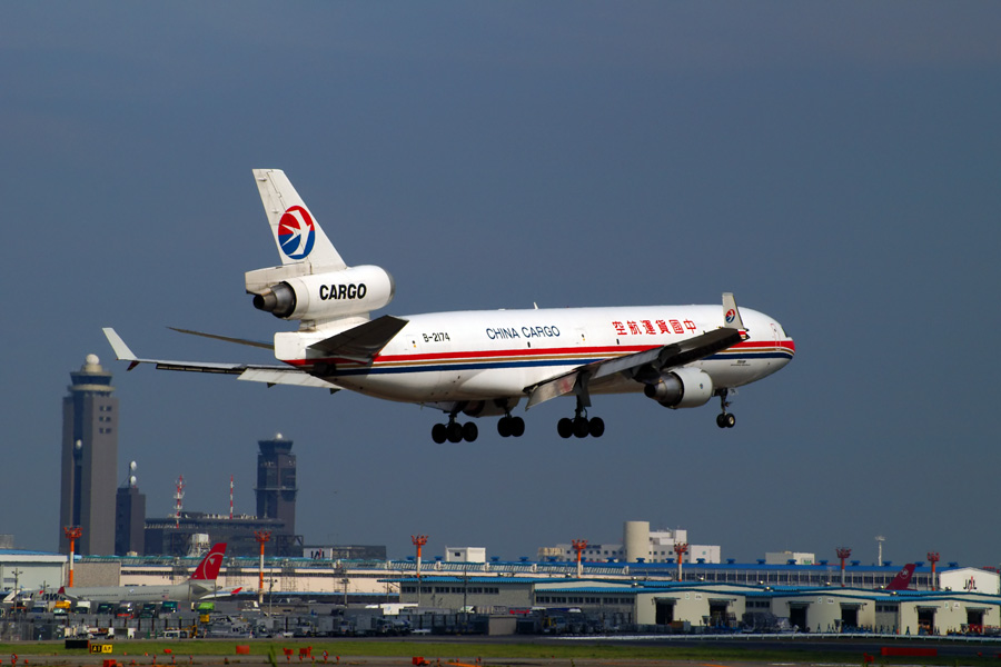 本日一番のお気に入り、中國貨運航空のMD11(B-2174)。ちょっと古めかしいラインと、第2エンジンの「CARGO」の文字がよい♪