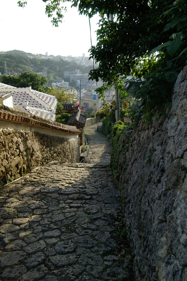 ←左 首里城付近にある有名な石畳の道路。斜陽を浴びて趣ありまくり!(笑)