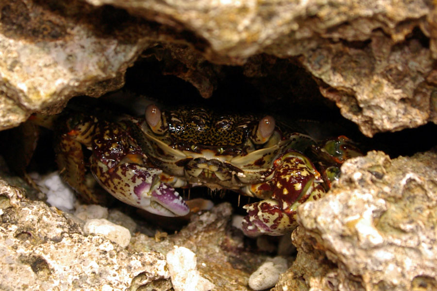 粟国島の浜辺で筆者と激闘を繰り広げたカニ。甲殻の幅がだいたい12cmぐらいある。この手のカニに挟まれると、泣いちゃうぐらい痛い!